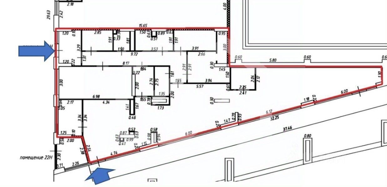 1047931. Предлагаем угловое помещение свободного назначения с арендатором "Самокат", площадью 203.7 кв. м, расположенное на первом этаже 26-этажного жилого дома в ЖК "Тринити". Без комиссии для покупателя.