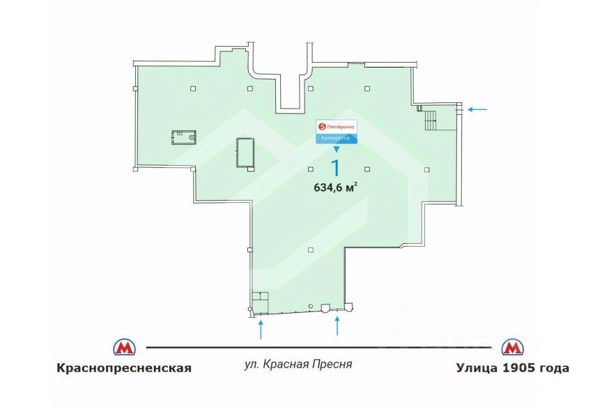 1095328. Предлагаем к приобретению торговое помещение с якорным арендатором - сеть супермаркетов "Пятерочка", площадью 634,6 кв. м., расположенное на первом этаже жилого дома. Без комиссии для покупателя.