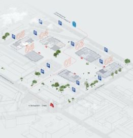 Наземная парковка для клиентов и сотрудников.