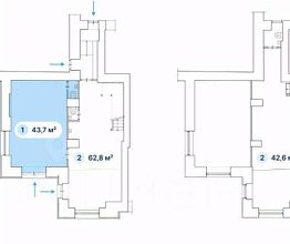 Описание помещения: Две отдельные входные группы с фасада с 1-ой линии, есть входы со двора.