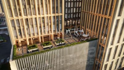 Проект объединяет статусные офисы, ресторанный дворик, супермаркет и озеленённую террасу, создавая полноценную экосистему для бизнеса.