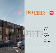 Продаётся помещение свободного назначения площадью 71.7 кв. м. в новостройке Бизнес-хаб "Потапово" по адресу Москва, ТиНАО, Новомосковский АО, Коммунарка пос., Москва, Новомосковский административный округ, район Коммунарка, проспект Куприна, 1с1. Без отделки. Окна с видом во двор. Высота потолков 3.7 м. Выделенная электрическая мощность — 15 кВт. Общий вход со двора. Стоимость помещения — 14 275 470 руб. Способы оплаты и более подробная информация по телефону.