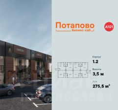 Продаётся помещение свободного назначения площадью 275.5 кв. м. в новостройке Бизнес-хаб "Потапово" по адресу Москва, ТиНАО, Новомосковский АО, Коммунарка пос., Москва, Новомосковский административный округ, район Коммунарка, проспект Куприна, 1с1. Без отделки. Окна с видом во двор. Высота потолков 3.5 м. Выделенная электрическая мощность — 65 кВт. Отдельный вход со двора. Стоимость помещения — 51 882 160 руб. Способы оплаты и более подробная информация по телефону.