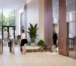 - На первых этажах офисных зданий просторные лобби с комфортной зоной ожидания, супермаркет, торговые помещения, отделения банков и сервисных служб, фитнес-студия