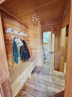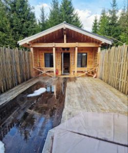 - На территории есть Гостиничный дом , 3 номера, находится рядом с банным комплексом. Три номера с индивидуальными террасами, до двух гостей в каждом номере. Каждый номер имеет планировку апартаментов, свой отдельный душ и небольшая мини кухня.