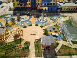 Вокруг жилого комплекса присутствует действующая жилая застройка с высокой плотностью населения.