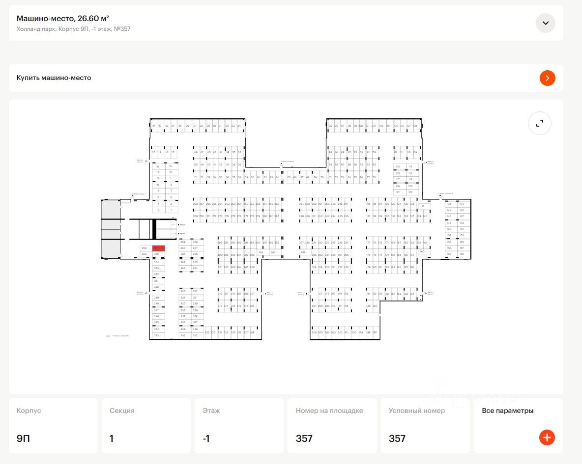 Охраняемый паркинг под 8 корпусом ( -1 этаж ). Место между въездом на паркинг и выходом к 4 секции. Пространство свободное от соседей с 3-х сторон.