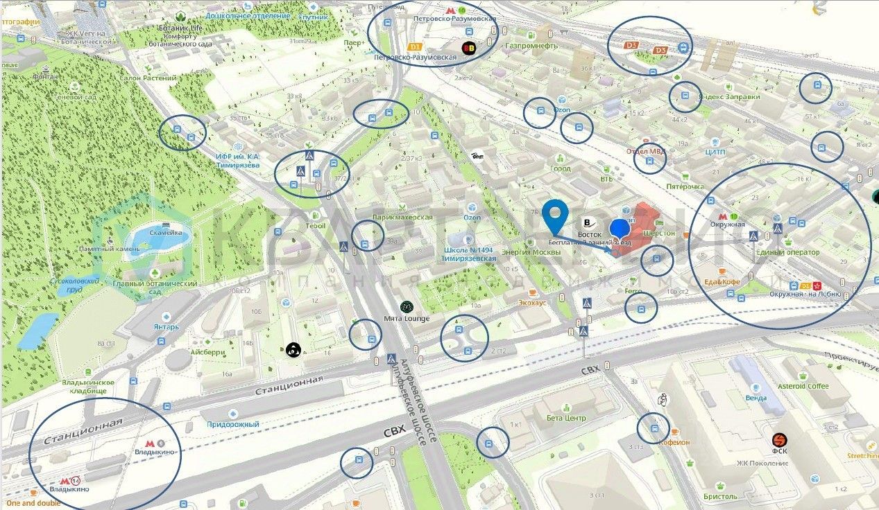 -В пешей доступности крупный пересадочный узел "Окружная" (метро МЦК и МЦД-1), станция метро "Владыкино". 2 минутах ходьбы.