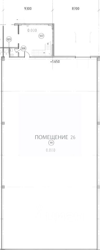 Планировочное решение включает в себя пространство для производства, склад или логистику 644,4 кв.м, а также офисную часть 106,05 кв.м.