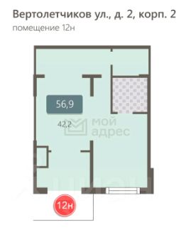 Аукцион в электронной форме по продаже нежилого помещения, закреплённого за КП "УГС" на праве оперативного управления, по адресу: г. Москва, ул. Вертолётчиков, д. 2, корп. 2, помещение 12Н, этаж 1, площадью 56,90 кв. м, кадастровый номер 77:16:0010105:32217
