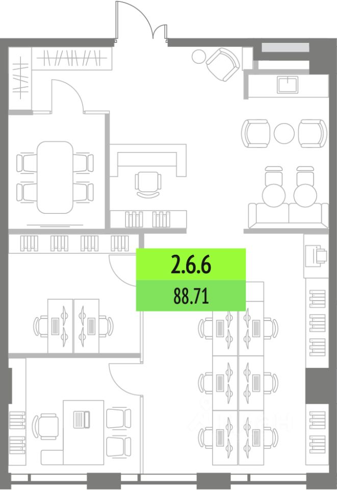 Помещение подходит для размещения офиса компании, штаб-квартиры, IT-команды, сервисного бизнеса, а также для инвестиционного приобретения.
