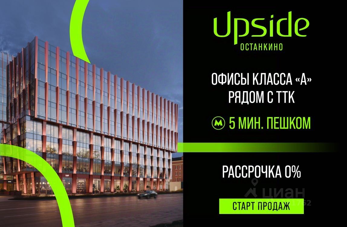 Продаётся офис 6 этаж, 88.71 м² в бизнес-центре класса "А" Upside Останкино.