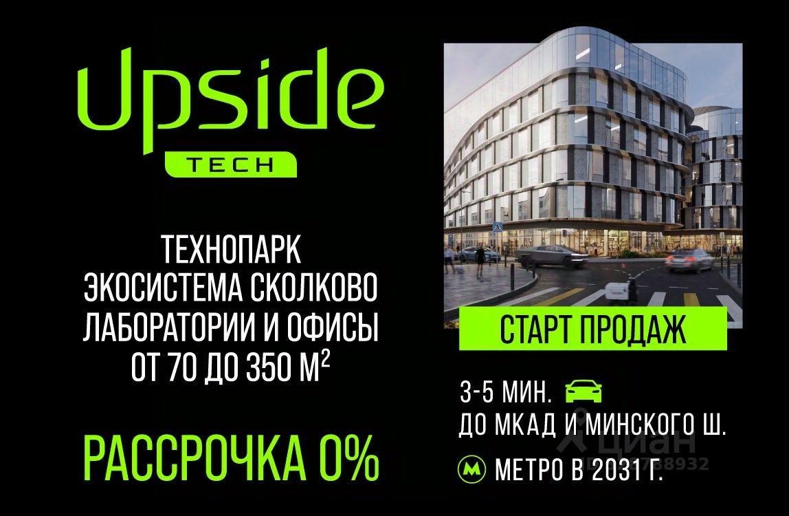 Upside Tech Альфа — современный технопарк для технологических компаний, R&D-подразделений и научных коллективов. Размещение в экосистеме Сколково создает возможности для получения статуса резидента инновационного центра и доступа к программам поддержки, а также упрощает кооперацию с научными и корпоративными центрами.