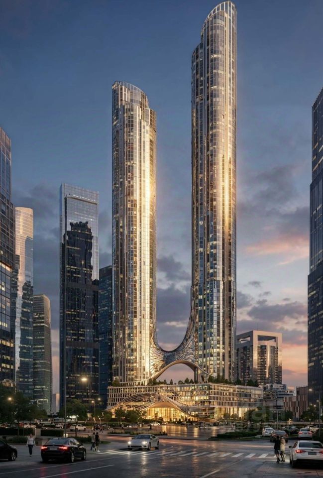 Аурус Резиденции - это самый высокий небоскреб России высотой 394,6 метра. Здание расположено в новом деловом и жилом кластере Сити-2.