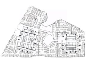 Описание помещения: Целиком этаж - 6726,3 м2, рассчитан на 1015 рабочих мест.