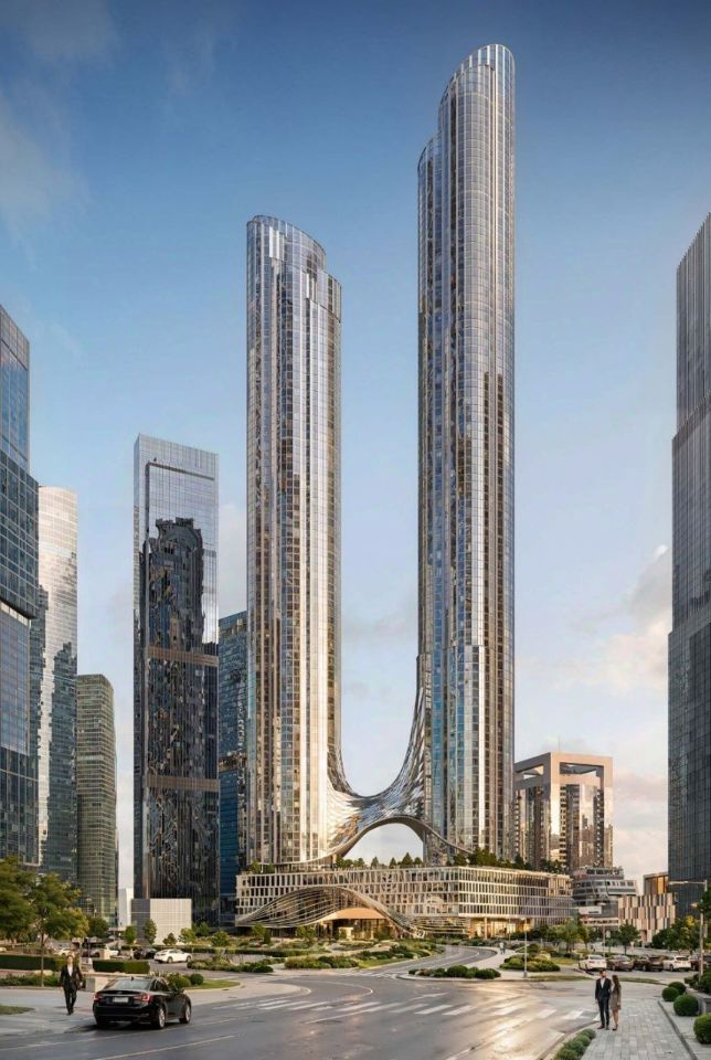 Аурус Резиденции - это самый высокий небоскреб России высотой 394,6 метра. Здание расположено в новом деловом и жилом кластере Сити-2.