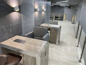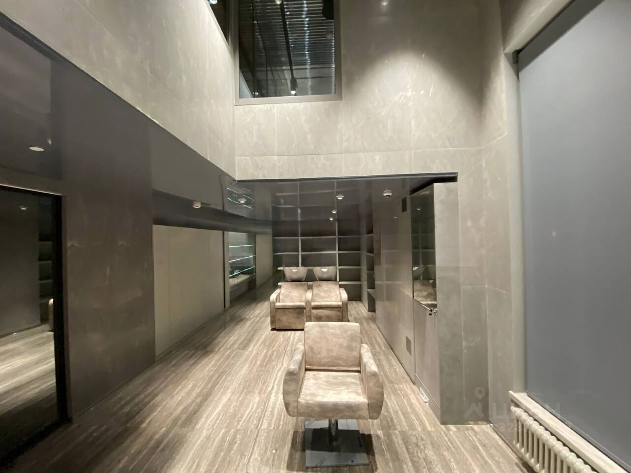 Общая площадь — 420 м². Просторное двухуровневое помещение расположено на первой линии, на первом этаже жилого комплекса. Выполнена качественная дизайнерская отделка премиум-класса (ранее использовалось под спа-салон), что позволяет начать эксплуатацию без дополнительных вложений.