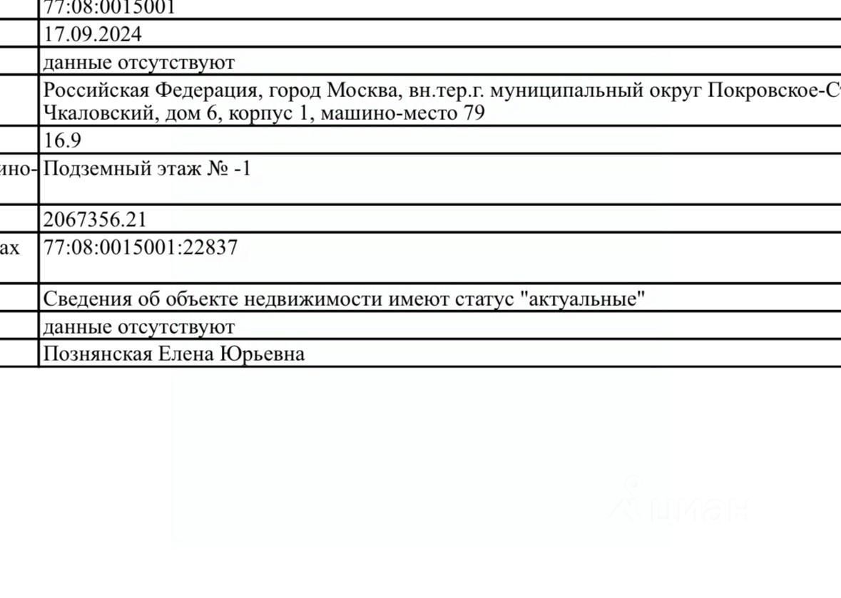 Продается машиноместо, 16,9 м²