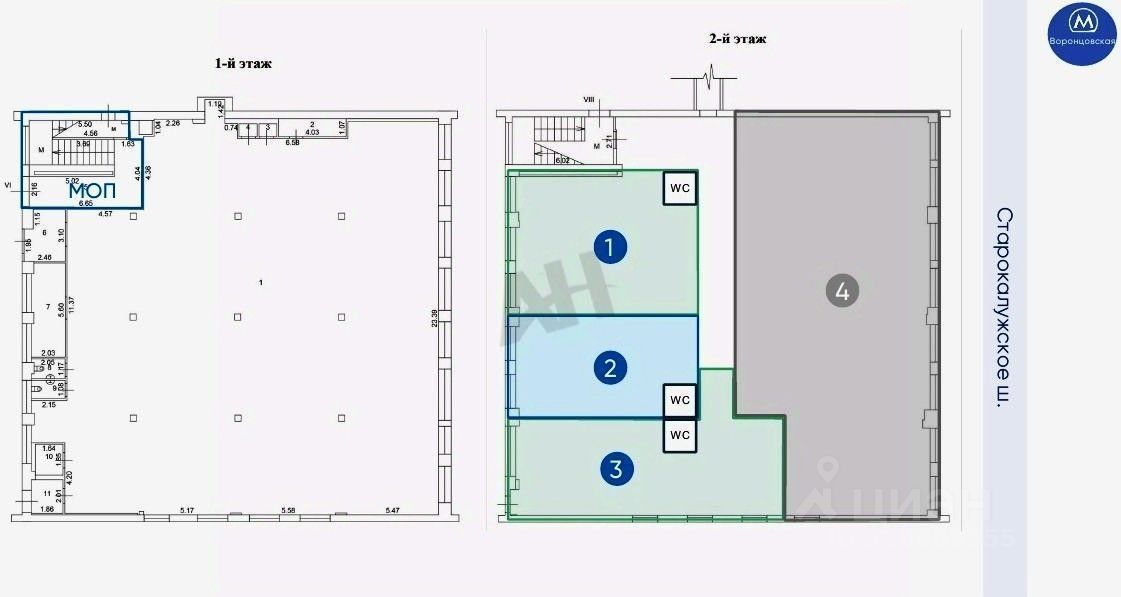 Лот 1074690 Предложение от Собственника! Продается помещение свободного назначения площадью 89.6 м2 на втором этаже нежилого здания. Объект расположен в прямой видимости от выхода из метро "Воронцовская". Помещение в настоящее время свободно, ведется процесс выделения в отдельный блок (блок 1 на планировке).