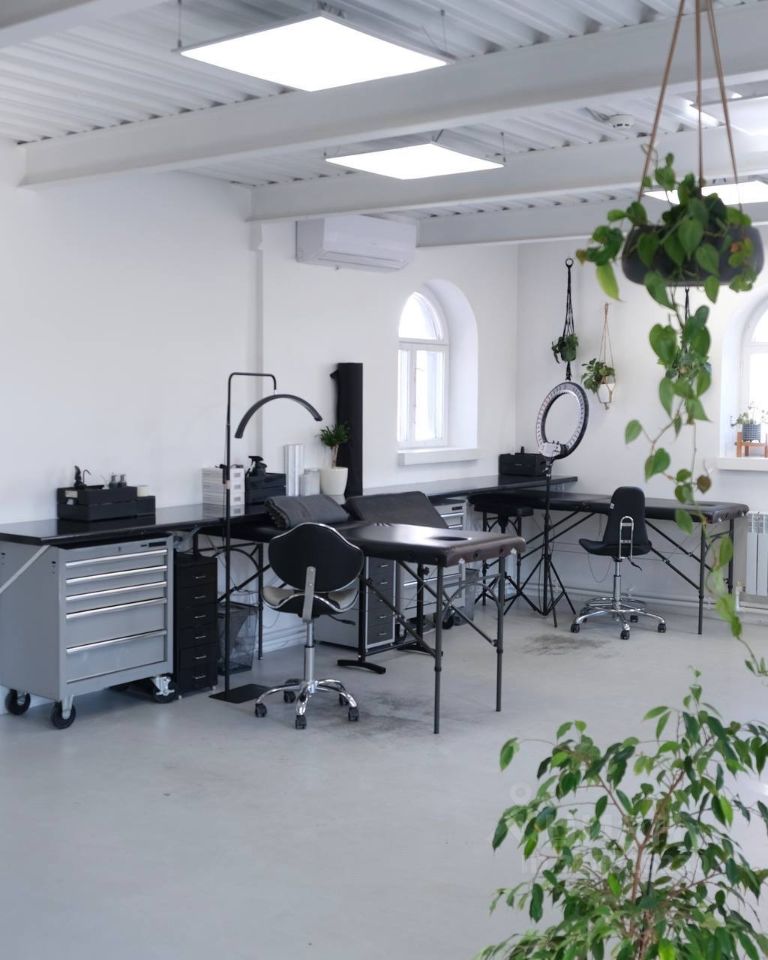 6 профессиональных массажных столов Yamaguchi, ортопедические кресла Kwadron, ринглайты, холдеры, стерильная зона с автоклавом, медицинским шкафом и посудомоечной машиной, полностью оборудованное пространство с ресепшн, кабинетами и зоной отдыха, 3 кондиционера, обогреватели и тепловые пушки.