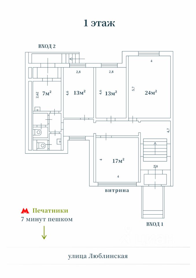 ПСН 112 м² на 1 линии Люблинской улицы рядом с м. Печатники