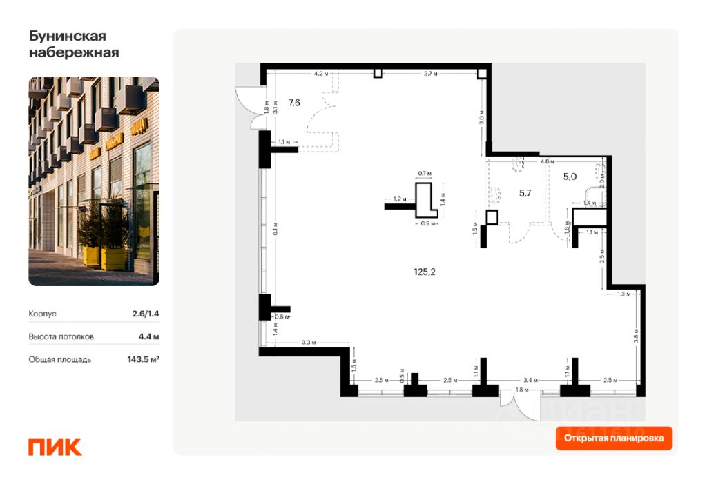 Продаётся нежилое помещение свободного назначения в квартале ПИК Бунинская набережная.