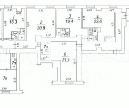 По документу площадь помещения (номер 6 на схеме) 21,3 кв.м Полезная площадь около 15 кв.м - в углу комнаты трубы (при желании можно отгородить стеной, конечно, оставив к ним доступ).