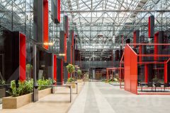 Два блока имеют независимые входы и выходы. Ещё шесть объединены общим коридором с пропускной системой и оснащены отдельными санузлами. Такая конфигурация позволяет гибко использовать площади и сохранять автономность каждого офиса.