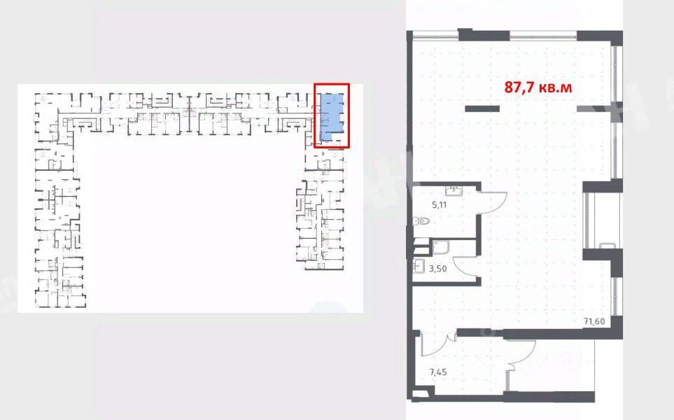 Лот 1073986 Помещение свободного назначения 87,7 м² в ЖК "Остафьево" | Стрит-ритейл | 1 этаж | 4 м потолки | Сдан