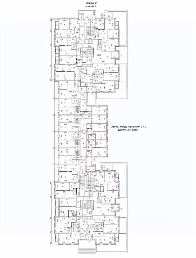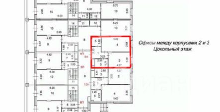1158348. Предлагаем помещение свободного назначения в ЖК "Большая семёрка", площадью 45.6 кв. м, расположенное на цокольном этаже 17-этажного жилого дома. Помещение: 9Н между корпусами 2 и 3. Без комиссии для покупателя.