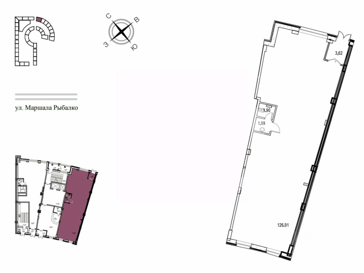 664186. Предлагаем помещение свободного назначения с арендатором "Ресторан Botteganova", площадью 100,7 кв. м., расположенное на первом этаже жилого дома в ЖК "Маршал". Корпус 9. Без комиссии для покупателя.
