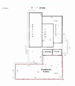833633. Предлагаем помещение свободного во встроенно-пристроенной части с арендаторами Магазин Оптики, Аптека, Разливное пиво "Хмель и Солод", Табак, Зоомагазин "Четыре лапы", Ломбард, площадью 479 кв. м, расположенное на первом этаже 12-этажного жилого дома. Без комиссии для покупателя.