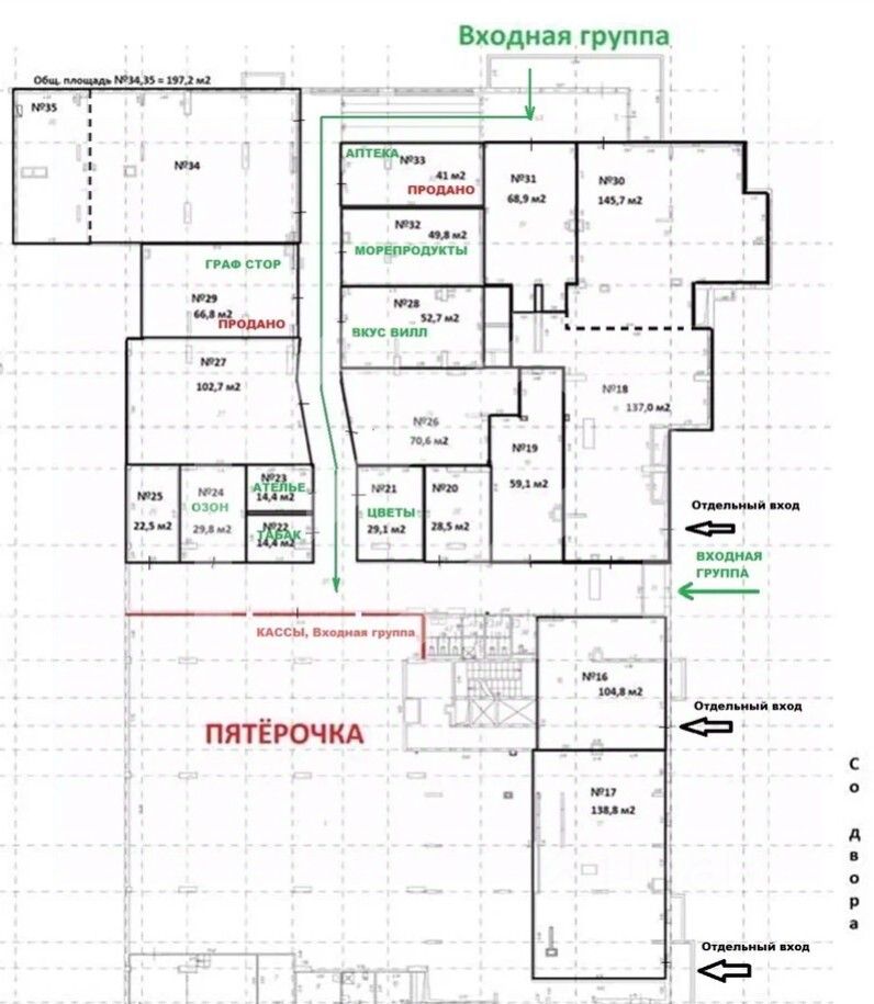 -отдельный вход из торговой галереи.