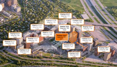 -ЖК состоит из 46 корпусов переменной этажности (от 16 до 18 этажей), рассчитанных на 14 979 квартир;