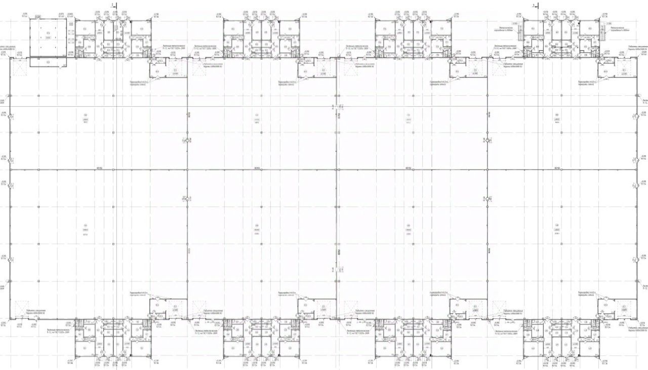 Здание состоит из 8 блоков с открытой планировкой и типовым ремонтом.