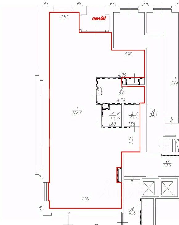 1022493. Предлагаем помещение свободного назначения с арендатором "Красное&Белое" в ЖК "Серебряный фонтан", площадью 138.2 кв. м, расположенное на первом этаже 22-этажного жилого дома. Без комиссии для покупателя.