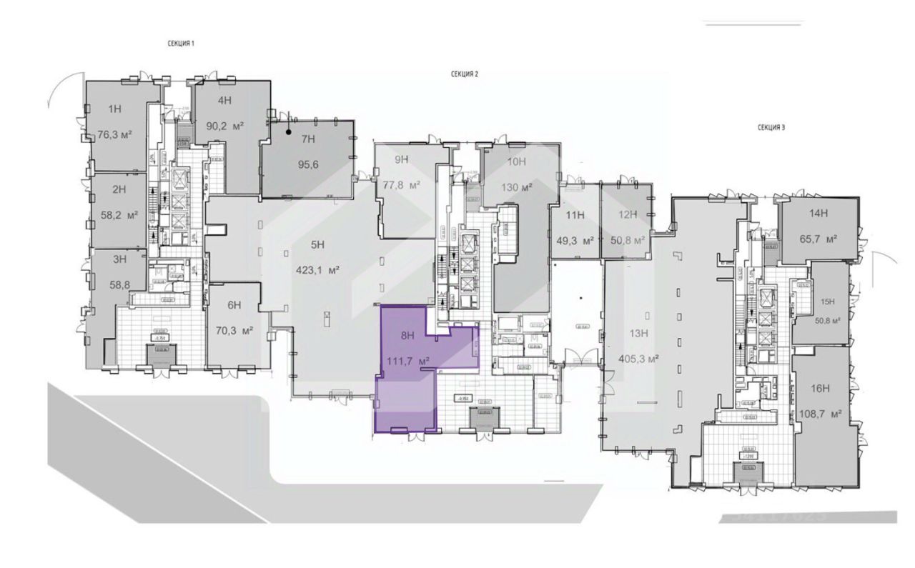 1045363. Предлагаем помещение свободного назначения, площадью 111,7 кв. м, расположенное на первом этаже жилого дома в ЖК "Метрополия". Секция 2. Без комиссии для покупателя.
