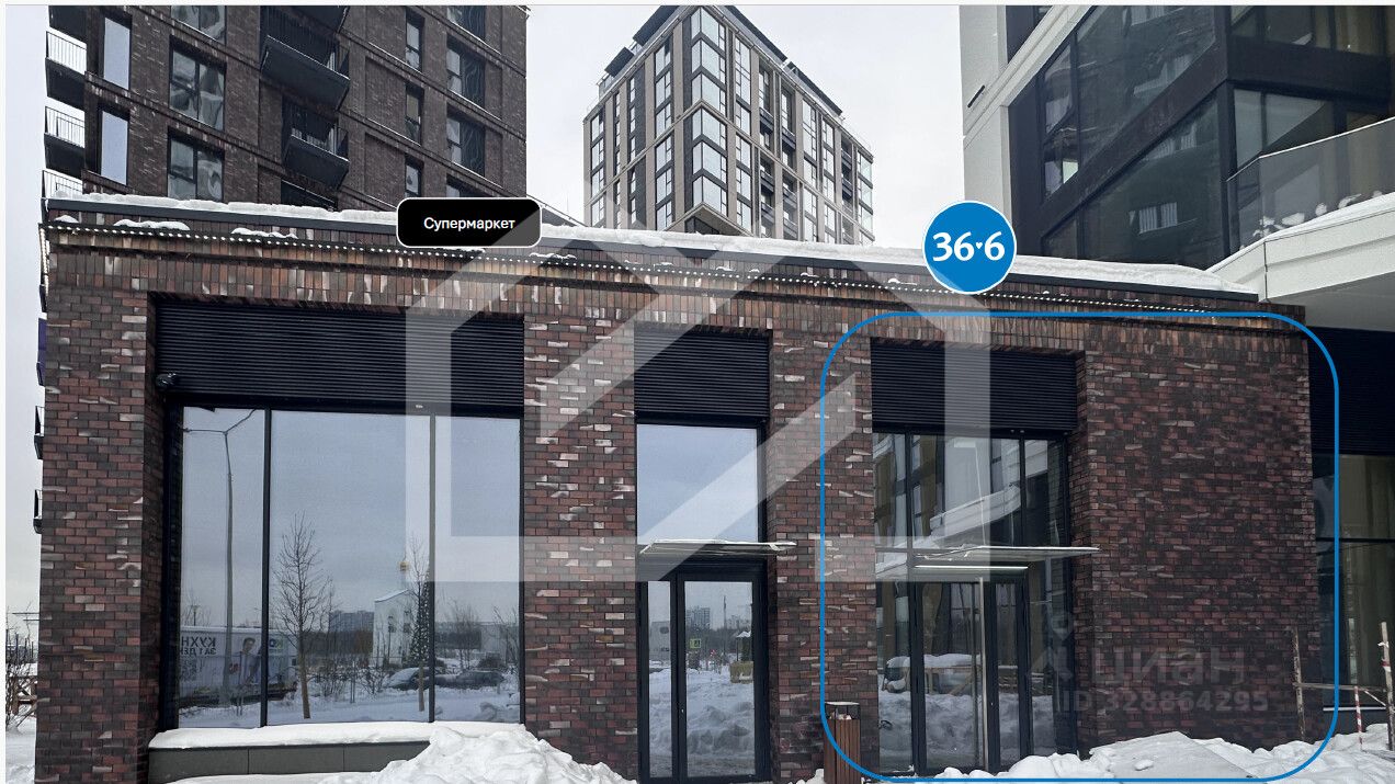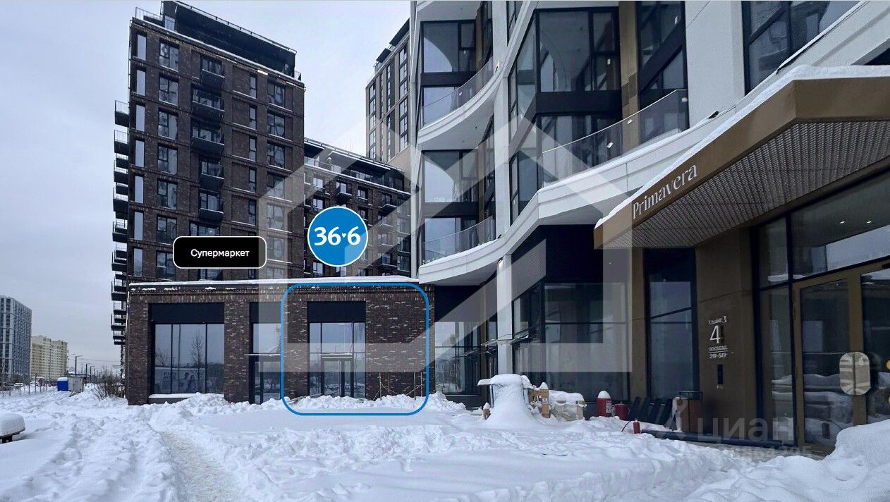 1050260. Предлагаем помещение свободного назначения с сетевым арендатором Аптека 36.6, площадью 56,1 кв. м., расположенное на первом этаже жилого дома ЖК Клубный город на реке Primavera. Без комиссии для покупателя.