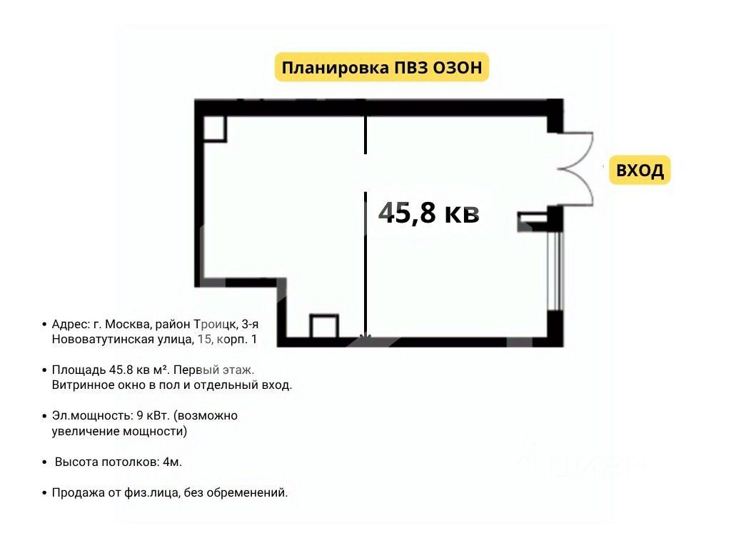 1083730. Предлагаем помещение свободного назначения с арендатором пункт выдачи "Ozon", площадью 45,8 кв. м, расположенное на первом этаже жилого дома в ЖК "Новые Ватутинки, мкр. Центральный". Без комиссии для покупателя.