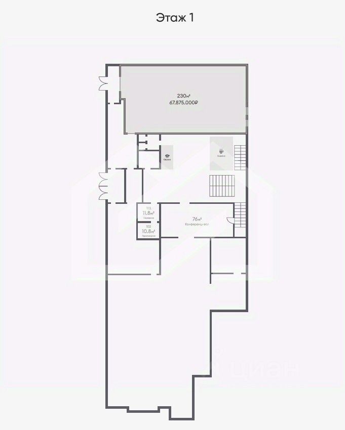 1091701. Предлагаем офисное помещение, площадью 230 кв. м, расположенное на 1 этаже административного здания.