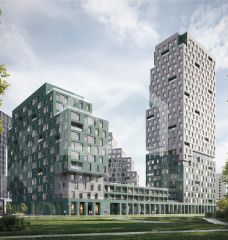 -ЖК состоит из 3 корпусов переменной этажности (от 14 до 28 этажей), рассчитанных на 545 квартир;
