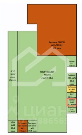 1119709. Предлагаем помещение свободного назначения с арендатором "HOCKEY BLACK" в МФК "Митино Парк", площадью 38 кв. м, расположенное на первом этаже 3-этажного здания. Без комиссии для покупателя.