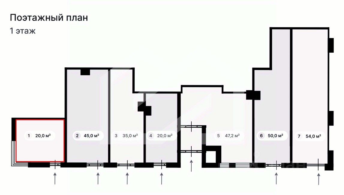 1163420. Предлагаем помещение свободного назначения, площадью 20 кв. м., расположенное на первом этаже 26-этажного жилого дома. Без комиссии для покупателя.