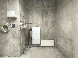 - Подключенные коммуникации: центральное отопление (сделана разводка, установлены радиаторы отопления), электричество (10 кВт с возможностью увеличения, установлены светильники); водоснабжение и водоотведение (выходы под 2 мокрые точки), пожарная сигнализация.