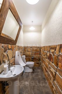 Отделка фасада здания выполнена из природного камня -песчаника на цокольном этаже, 2й этаж оштукатурен и окрашен краской Ceresit
