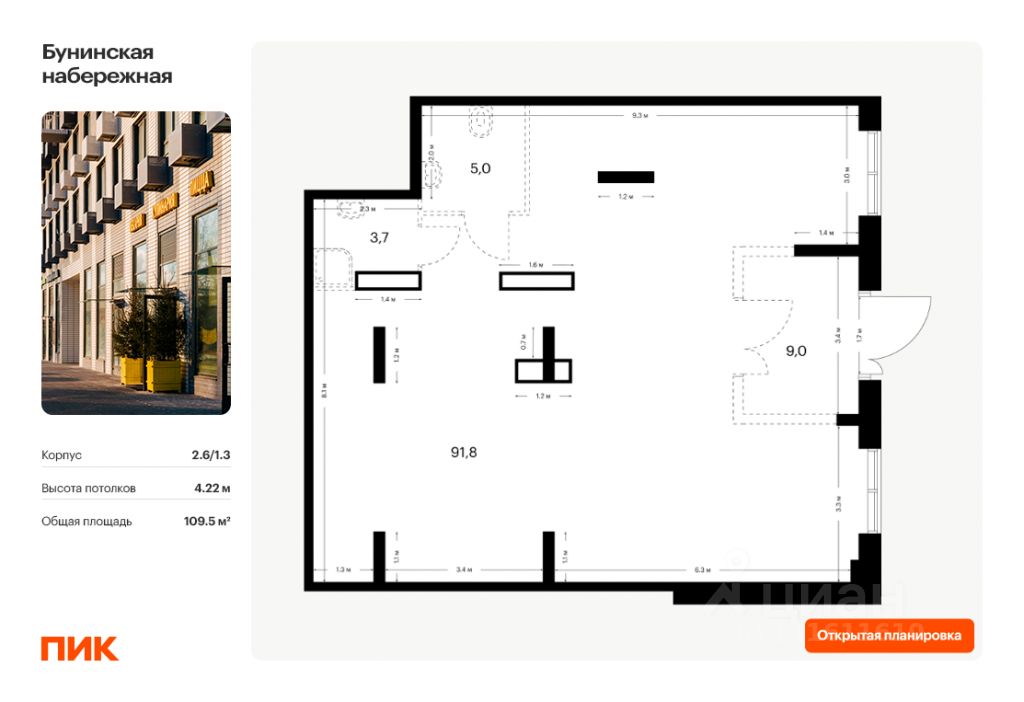 Продаётся нежилое помещение свободного назначения в квартале ПИК Бунинская набережная.