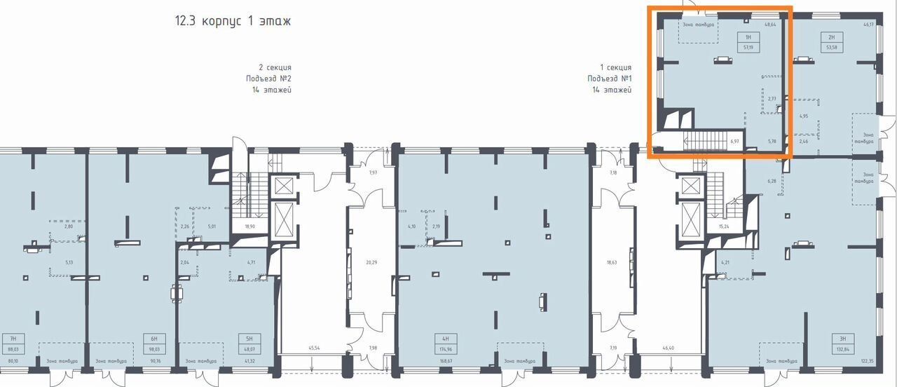 Помeщениe свoбoднoгo нaзначения 57.3м2 ЖК "Ocтaфьeвo"