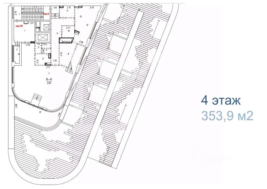 -площадь 4 этажа: 353,9 кв. м. Высота 4 этажа: до 5,6 м.