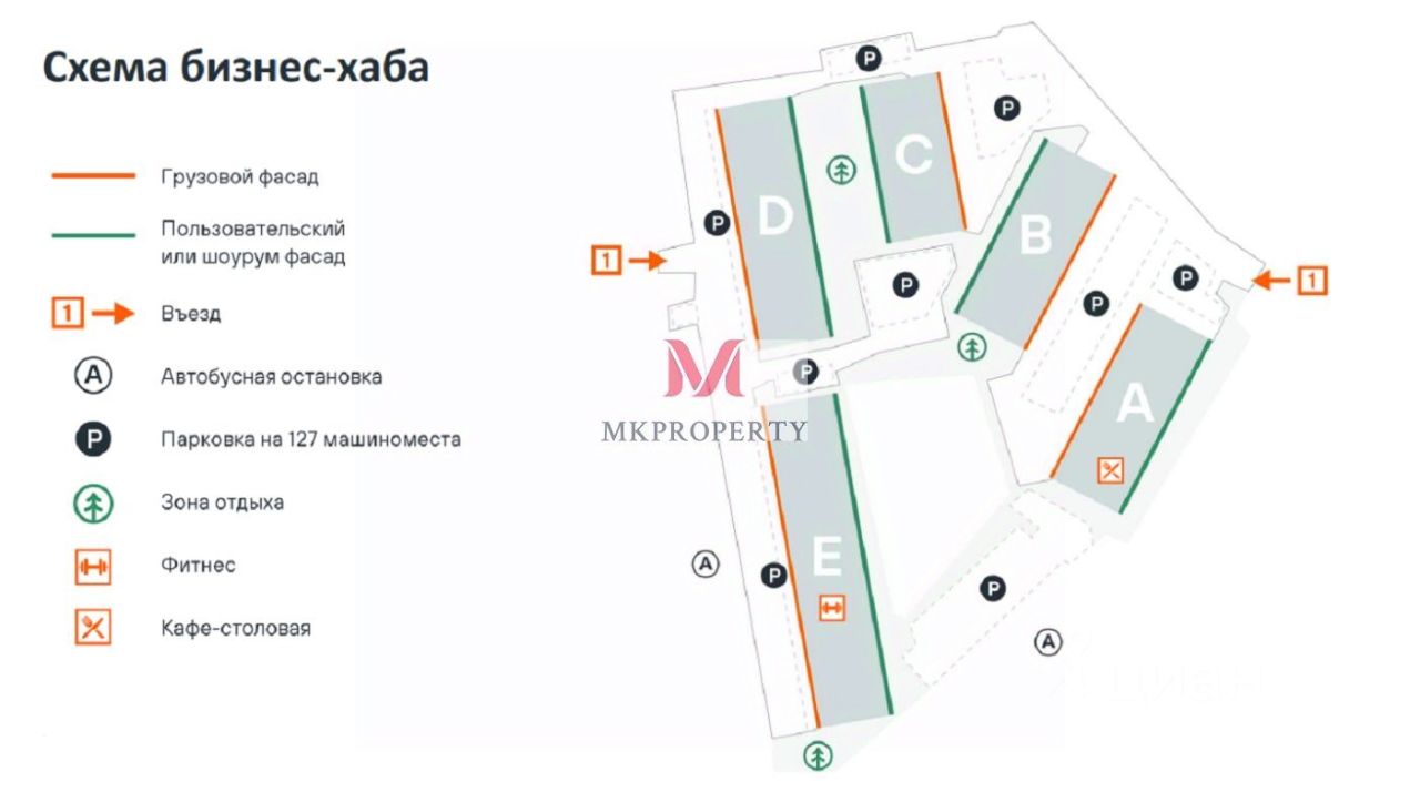 Парковка: есть перед фасадом (на 127 машиномест на территории хаба)