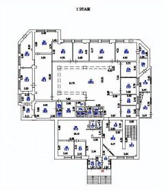 2 и 3 этажи - офисные помещения, есть выделенная зона руководства. Земельный участок 1900 м2 в долгосрочной аренде.